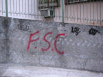 そして、出るときになって、お向かいの壁にこんな文字を発見!!