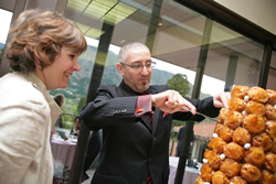 ↑これがシュークリームでできたケーキ。司会のマルコは料理人でも